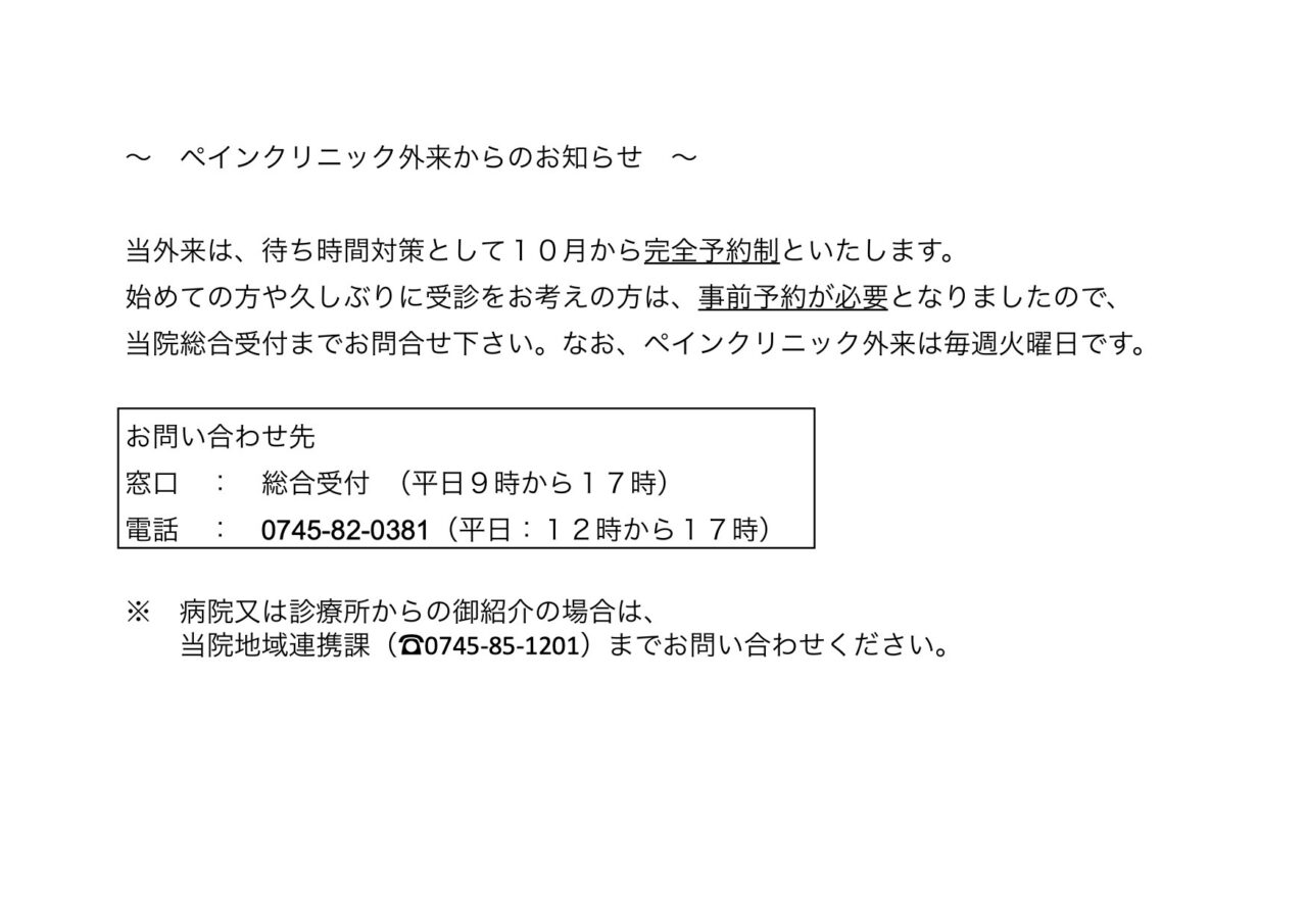 【重要】ペインクリニック外来からのお知らせ